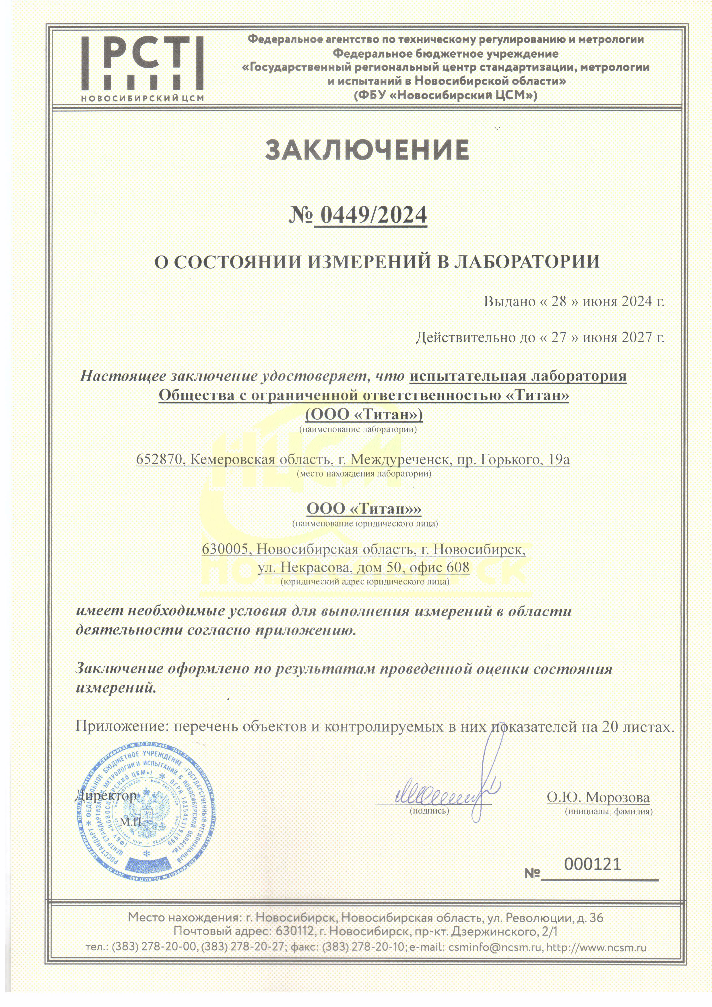 Испытательная лаборатория «ТИТАН» имеет Заключение о состоянии измерений в лаборатории, подтверждающее наличие необходимых условий для выполнения измерений в заявленной области деятельности.